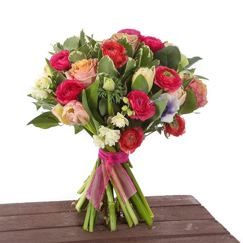 Bring a touch of spring’s soft charm into any space with Springtime Bloom Kiss. This sweet hand‑tied bouquet blends rosy pinks, gentle peaches, and creamy seasonal blooms with fresh greenery for a naturally radiant finish. Light, uplifting, and full of delicate colour, it’s the perfect gift for celebrating the joy and beauty of spring.