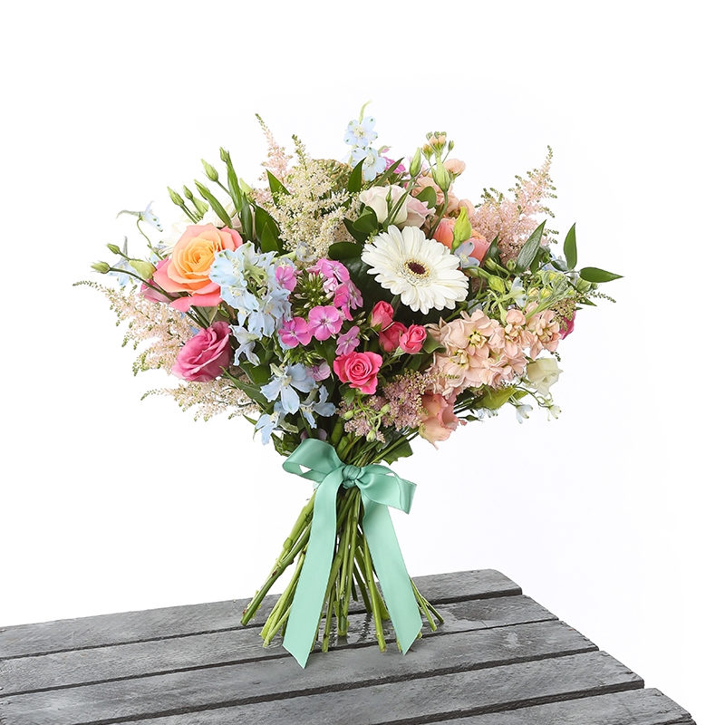You choose the size and colour and leave the rest to us! Our florists will use a beautiful selection of seasonal blooms & fresh foliage to create a Florist Choice bespoke bouquet, made just for you.